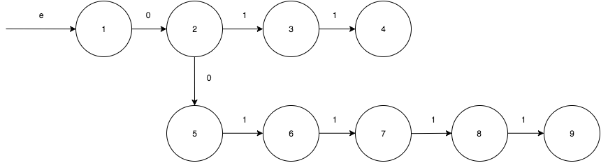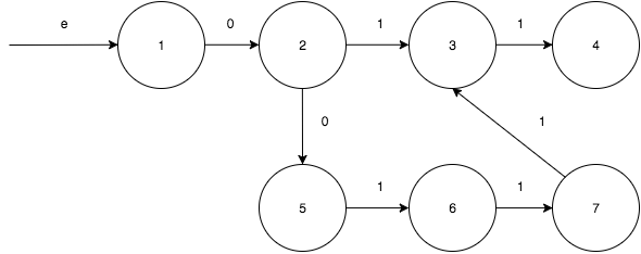 And this explanation doesn’t explain anything to me. I mean okay the $+1$ part obvious, but why is there $3n$? I mean I agree that we probably need states to count how many 0 and 1 we meet, but exactly how we’re gonna do it? If anything we should have 4 states in my opinion. One recognize 0, one to recognize 1 and another two states to count the numbers of them. Right now I’m reading articles and papers about NFA, DFA, regular expressions and backreference, but maybe the answer is much simpler? EDIT1. Okay, I’ve tried my best and constructed kind of obvious DFA for this task.